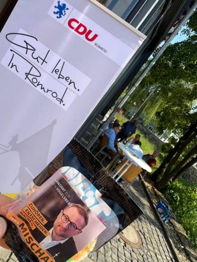 Die CDU-Romrod bot am Montag, 05. Juni 2023, interessierten Mitbürgerinnen und Mitbürgern eine besondere Bürgersprechstunde an. Jeder war eingeladen sich persönlich mit dem Landratskandidaten Dr. Jens Mischak und dem Mitglied des Landtags (MdL) Michael Ruhl auszutauschen.