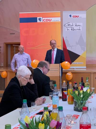 Was ist eigentlich wichtig? Was ist eigentlich das Wesentliche, fragte sich Brand im Angesicht der aktuellen politischen Situation? In Teilen der Bevölkerung habe sich eine bedenkliche Stimmung ausgebreitet, die den Kompromiss als politische Lösung immer mehr verächtlich mache. Im Zuge dessen habe sich ein bedenklicher Verzichtspopulismus in Teilen der Gesellschaft etabliert. Schaue man sich Deutschland an, so sehe man jedoch ein schönes, wohlhabendes und soziales Land. Den Deutschen gehe es überwiegend gut. Die letzten 10 Jahre der CDU geführten Bundesregierung haben einen wirtschaftlichen Aufschwung hervorgebracht, wie es ihn zuletzt während der Industriellen Revolution im 19. Jahrhundert gegeben habe. In unserem Land herrsche nahezu Vollbeschäftigung, die Löhne stiegen und der Bundeshaushalt sei ausgeglichen. Helmut Kohl sprach im Zuge der Wende von blühenden Landschaften und wurde dafür angefeindet, doch fahre man heute in die ostdeutschen Städte, dann könne man die Entwicklung hin zum positiven nicht mehr verneinen. Welche Nation hätte den Wiederaufbau so schnell leisten können, fragte Brand? In diesem Sinne plädiert Brand für einen offenen und gestalterischen Weg, der die Meinung anderer zulasse, der sich durch das Finden von Kompromissen auszeichne und der auch Momente der guten Laune zulasse.