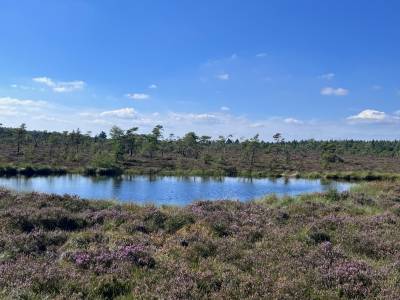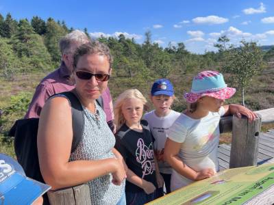 Nachdem die Kinder sich ausgetobt hatten, ging es zu einer kurzen Stippvisite zur Fuldaquelle, in deren Gewässer sie sich ihre Füße von der Hitze abkühlen konnten. Als krönenden Abschluss ging es jetzt zum Schwarzen Moor. Hier galt es, einen 2,7km langen Fußweg durch die herrliche Moorlandschaft zu absolvieren und die großartige Natur zu genießen. Besonders spannend fanden die Kinder die Geschichte von den drei Frauen, die bei Vollmond als traurige Geister über dem Moorauge schweben sollen.